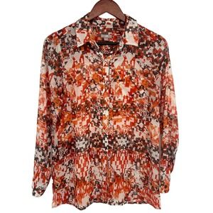 J. Jill Womens Size XS Orange Long Sleeve Blouse Shirt Top Winter Geometric