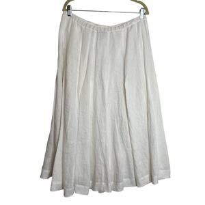 J Jill Womens Skirt M Petite White Linen Cotton Lined Midi A-Line Gentle Pleats