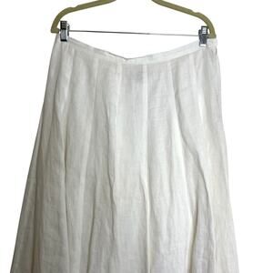 J Jill Women's Skirt Size Medium Petite White Linen Cotton Lined Midi A-Line Gentle Pleats