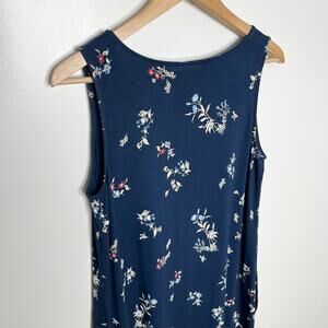 J. Jill Womens Sleeveless Jersey Maxi Dress Small Navy Floral Pockets Comfort