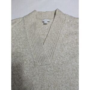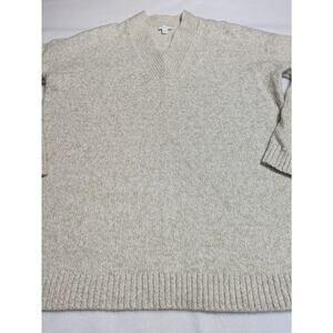 J Jill Womens Sweater Cream Sz Medium V-Neck Long Sleeve Knitted Pullover Top