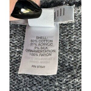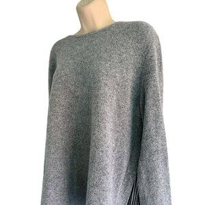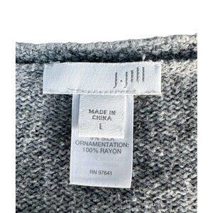 J. Jill woman's gray knit sweater. Sweater has a crew neck, long sleeves and very fun gray and white contrasting stiped sides. It's made of a cotton, acrylic, silk blend and is a woman's size large.