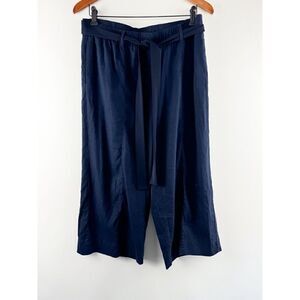 J. Jill Womens Sz Medium Petite Linen Stretch Wide Leg Cropped Pants Blue. Condition is Pre-owned.