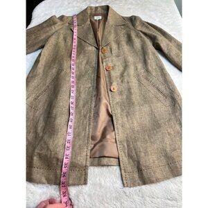 J. Jill Womens Tan Linen Blazer Jacket With 3/4 Sleeves & Button Closures size m