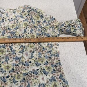 J. Jill Womens Textured Cotton Blouse 3X Cream green Blue Floral 3/4 Sleeve