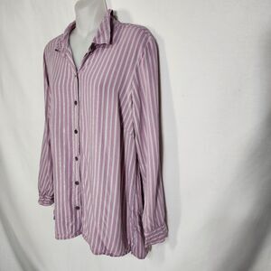 J Jill Womens Top Blouse Medium Purple Striped Long Sleeve Button Shirt Viscose
