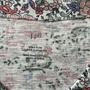 J Jill Womens Top XS Floral Print Pima Slub Elbow Sleeve Tee 100% Cotton Casual