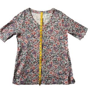 J Jill Womens Top XS Floral Print Pima Slub Elbow Sleeve Tee 100% Cotton