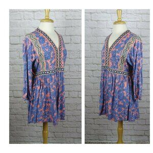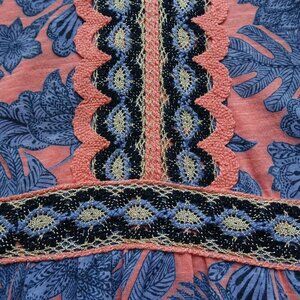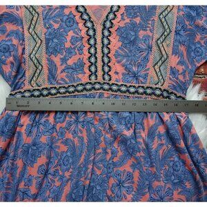 J. Jill Women's Tunic Top Crochet Trim Floral Tie-Back Blouse Boho Oversized XS