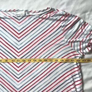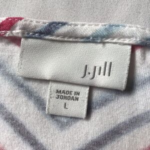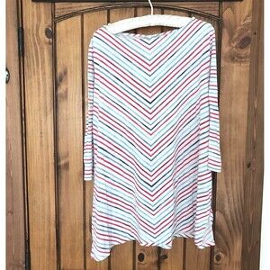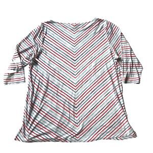 J. Jill Womens Tunic Top Large White Red Blue Stripe Elbow Sleeves Rayon Lyocell