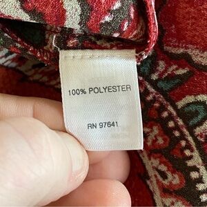Elevate your wardrobe with this beautiful J. Jill Women's Tunic Top. The paisley red floral tiered blouse is perfect for any occasion, whether it's a casual day out or a formal event. The long sleeve, crew neck blouse features a pullover closure and is made of 100% poly material. It is machine washable.