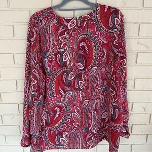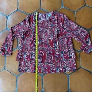 J. Jill Women's Tunic Top Paisley Red Floral Tiered Blouse SZ XL