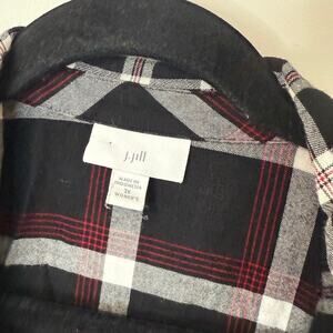 J. Jill Women's Tunic Top Shirt Dress Plaid Button Down LS Black Red Plus 2X