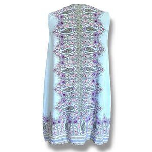 J Jill Womens Tunic Top Sz 1X Blue Paisley Floral Sleeveless Blouse Coastal Boho