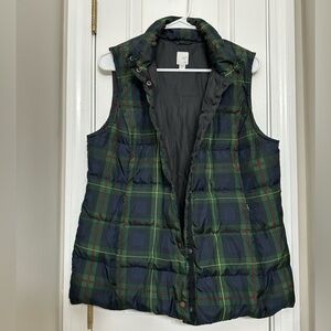 J. Jill Women’s Vest Medium Puffer Green Tartan Plaid Down Snap Up Insulated