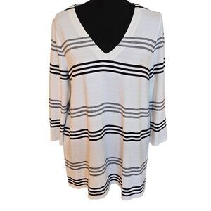 J. Jill Women's Wearever Black White Stripe V-Neck Tunic Top