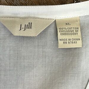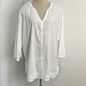 J Jill Women's White Gauzy Cotton Top Size XL Button Up Tunic Embroidered Lace