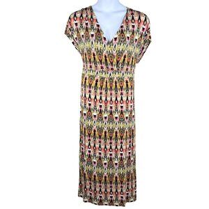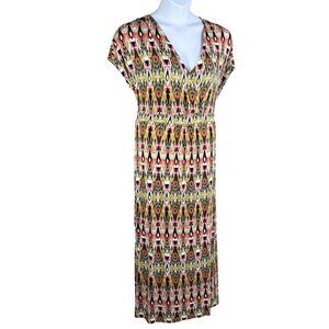 J. Jill Womens XL Multicolor Aztec Southwest Geometric Print Empire Waist V-Neck Maxi Dress Stretchy Comfy Resort Wear Vacation Cruise