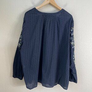 J Jill Womens XL Navy Embroidered Tunic Top Blouse Long Sleeve Floral Boho