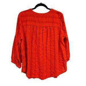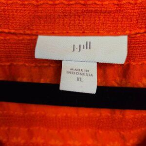 J. Jill Womens XL Orange Textured Cotton Button Front Blouse With 3/4 Balloon Sleeves
