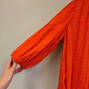 J. Jill Womens XL Orange Textured Cotton Button Front Blouse 3/4 Balloon Sleeves