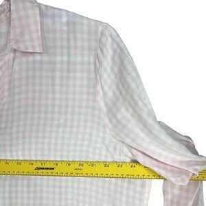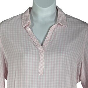 J Jill Womens XL Soft Pink Gingham Relaxed Popover Blouse Soft Collar Notch Neckline Clean Girl Feminine