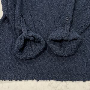 J Jill Womens XL Textured Sweater Navy Blue 100% Cotton Pullover Roll Tab Sleeve