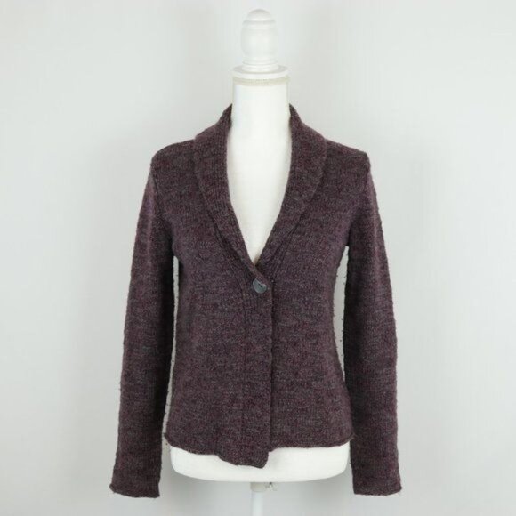J. Jill Women's XS Purple Shawl Collar Wool & Alpaca Single Button Cardigan