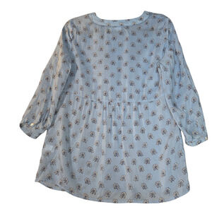 J. Jill Womens XS Top Blue Floral Pullover Sheer Embroidered Flowy Boho Babydoll