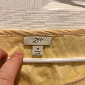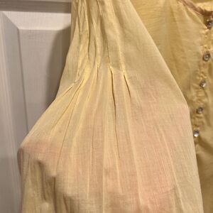 J. Jill Women’s Yellow Cotton Blouse Size Medium Boxy Semi Sheer Pleated Spring