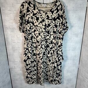 J Jill floral, short sleeve dress brown cream buttons down skirt pockets, soft