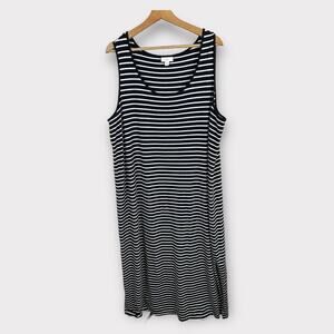 J Jill Womens size XL Striped Blue White Maxi Sleeveless Dress Pima Cotton Modal
