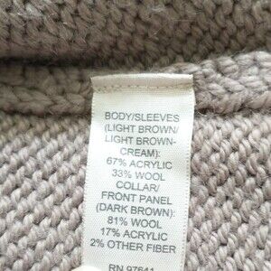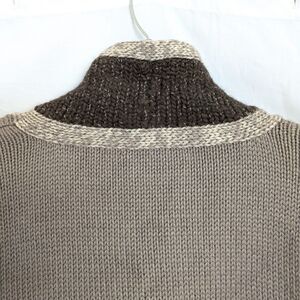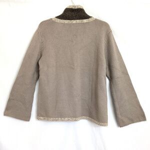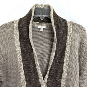 Cozy, warm J. Jill wool blend cardigan with snap button closure. A blend of neutral tones including a darker contrasting trim.