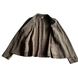J Jill Wool Blend Jersey Houndstooth Brown Tan Two Button Blazer Jacket M