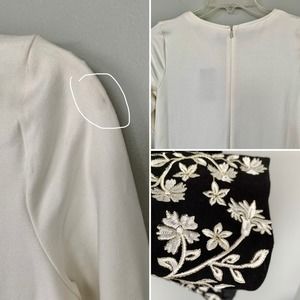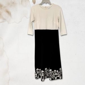 J. Jill X Christian Siriano Ponte Knit Emrboidered Floral Midi Dress in Ivory & Black Size XS.
