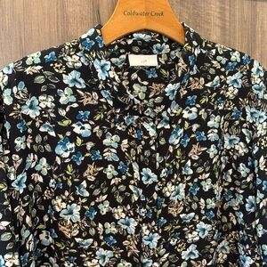 J Jill XL Button Tunic Top Layered Floral Shirt Long Sleeve