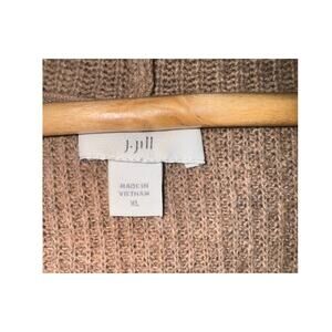 Beautiful J. Jill soft knit sweater featuring a chic colorblock design in tan, cream, and black. Relaxed fit with a cozy cowl neckline โ perfect for layering during fall and winter. Soft ribbed texture adds comfort and style.