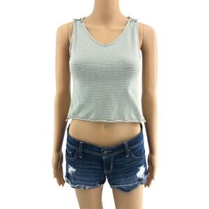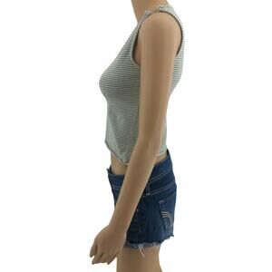 J. Jill XS Cream Green Striped Mallgoth Grunge Safety Pin Crop Top Tank