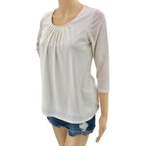 J. Jill XS Petite Cream Layered Burnout Blouse Top 3/4 Sleeve Pleated Scoop Neck
