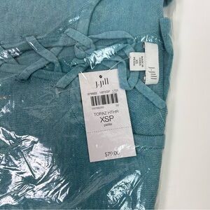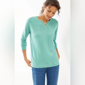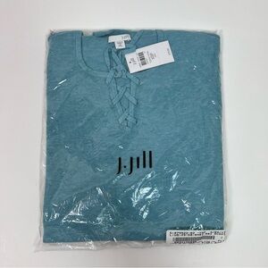 J. Jill XSP Lace-Up Pullover Sweater Relaxed Fit Topaz Heather Teal