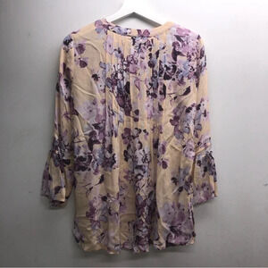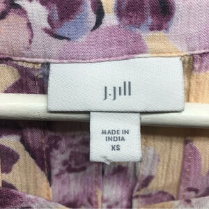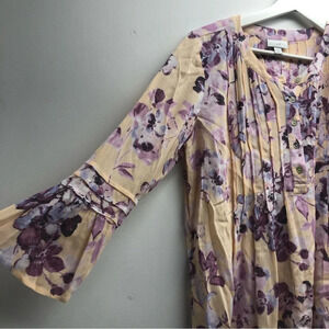 J. Jill Yellow & Purple Floral Pleated Bohemian Tunic Blouse Size XS
