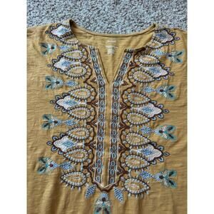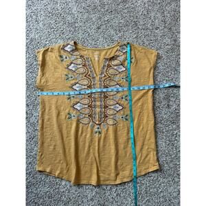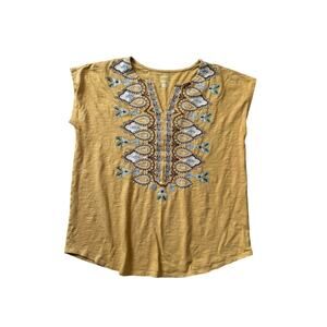 J. Jill Yellow t-shirt, Embroidered Design; Cap sleeves; Medium; 100% Cotton