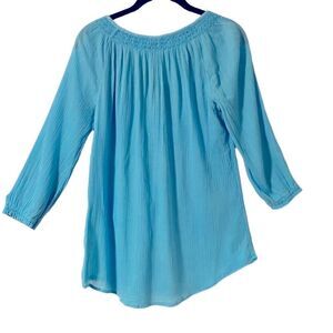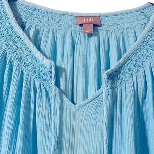 J. Jill aqua crinkle cotton peasant blouse cottage core boho XS. Soft, light, and breathable. Pretty too!