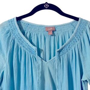 J. Jill aqua crinkle cotton peasant blouse cottage core boho XS