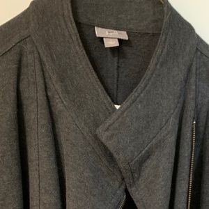 Dark gray. Size large. Mandarin style collar. 60%cotton/40% polyester. Nice and soft.