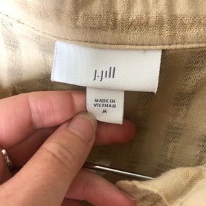 J Jill beige cotton grid button down lightweight shirt