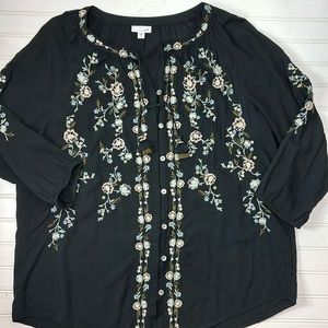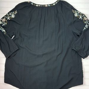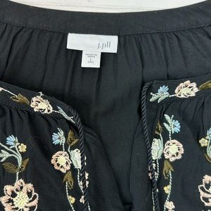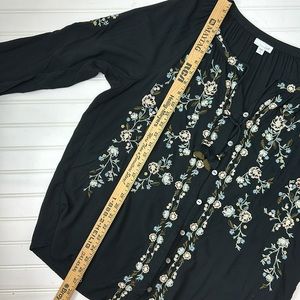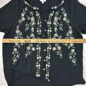 Cute casual lightweight blouse with button front and cute little tassels. No stains or holes but some of the embroidery threads are loose. See photos for approximate measurements.