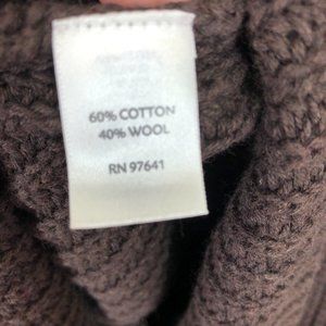Dark brown turtleneck sweater dress. Wool blend. Long sleeves. Bust 40”, length 36”.