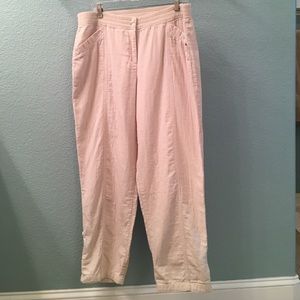 Th most comfortable pair of pants for the summer! Roll them up, or leave them long. 100% cotton with an easy waistband. Machine wash and dry. Flat back pockets. In like new, perfect condition.
