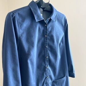J Jill dress slate blue size medium button up 2 front pockets utilitarian style